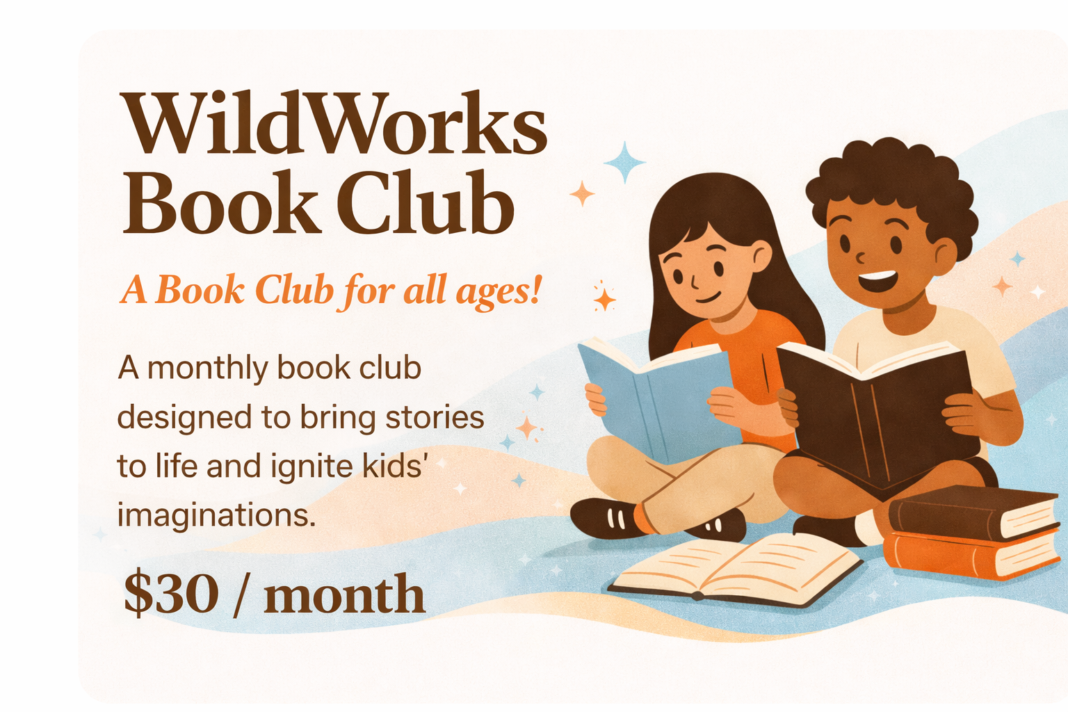 WildWorks is a monthly book club designed to bring stories to life and ignite kids’ imaginations. Every month, young readers meet online or in person for a fun, interactive session led by librarians — sharing ideas, exploring stories, and building friendships.